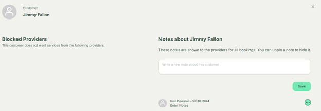 You can now add relevant notes that you want providers to see related to the customer. In the text box you can enter notes. Simply click Save to add note to customer.