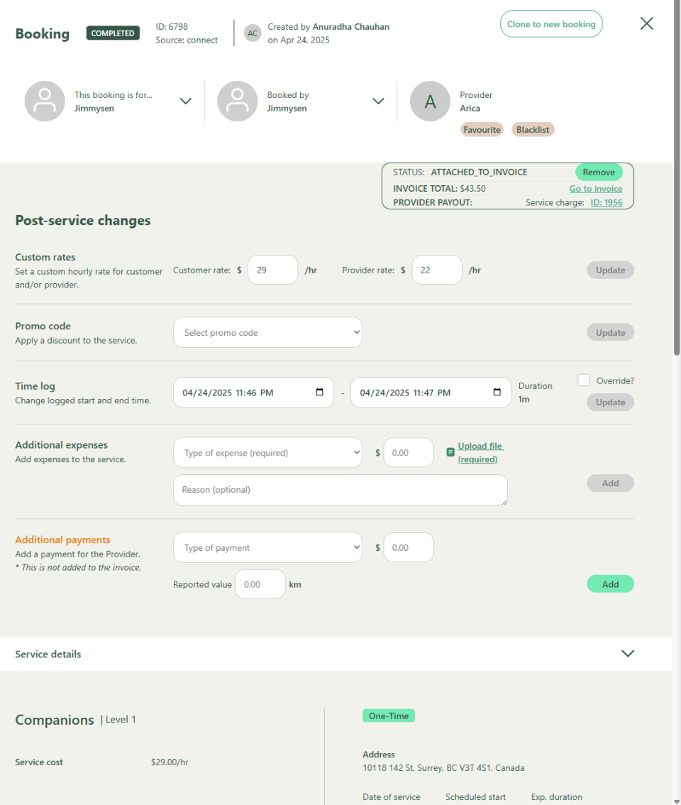 - X out when finish updating post service details.