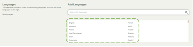 You can also click from a list of languages if the customer is bilingual, simply click all the languages apply. Once clicked, they would appear on the left hand side.