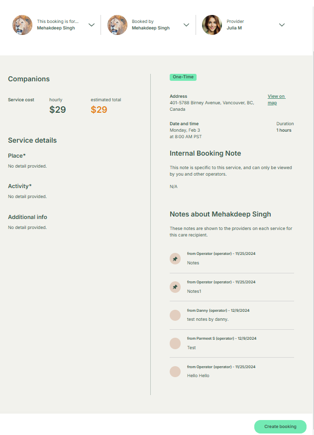 If the operator wants, he can choose Julia M and confirm the booking.