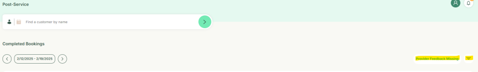 When you click post service, you can see ‘Provider feedback Missing’ filter on your right. Click on the three dots.