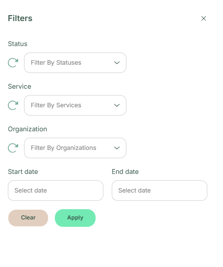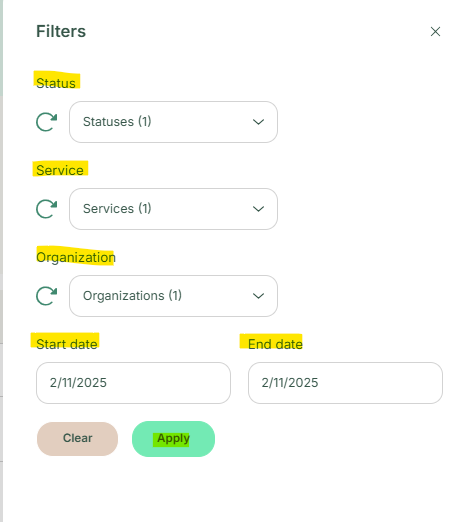 The filter screen will open up. Use the filters to search for bookings by: