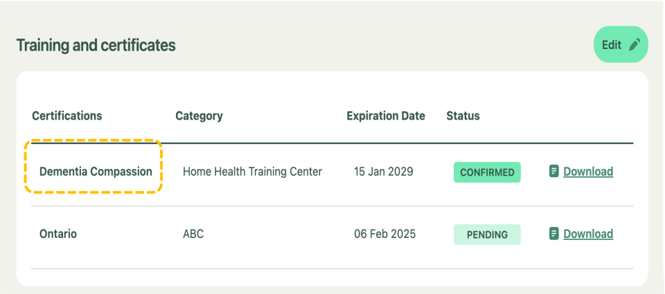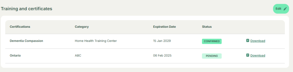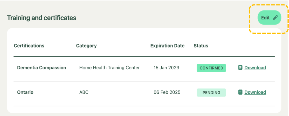 View and Edit Training and Certificate