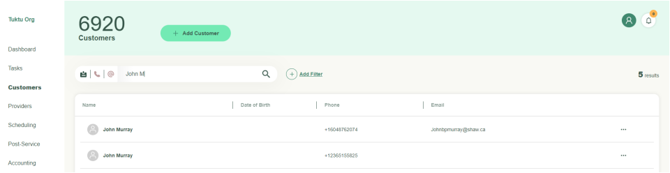 - Search for the customer using search function