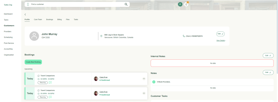 - Navigate to the customer profile