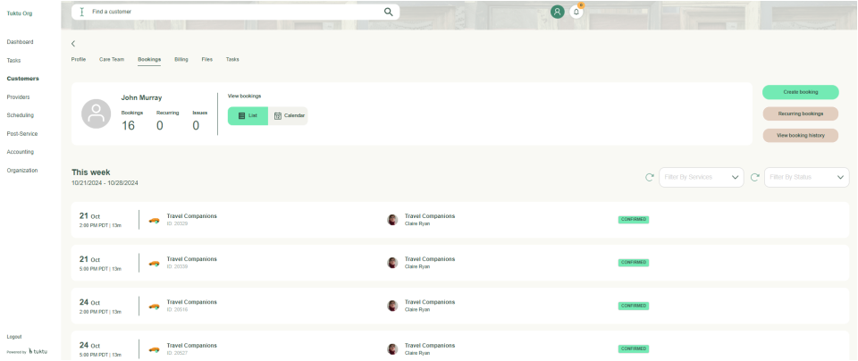 - Click on the Booking Tab and find the desired appointment