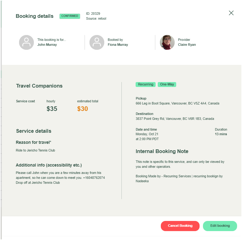 Click on Cancel Booking to initiate the cancellation of the appointment.