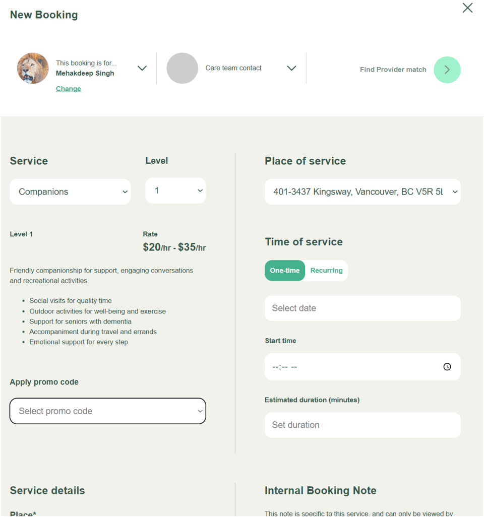 Enter all the key information to make the booking